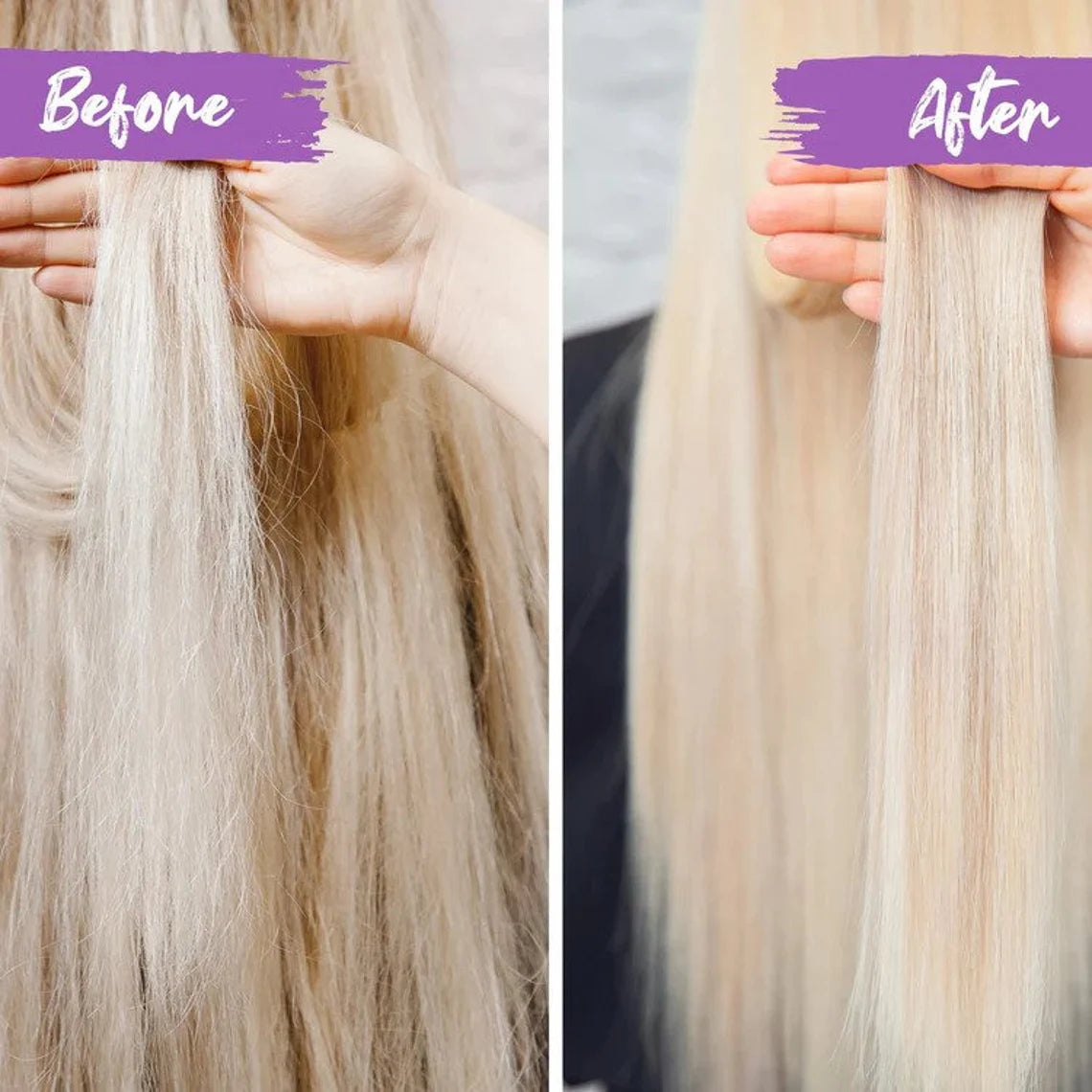 لمعان يزيل النحاس : يحتوي شريط البلسم الخاص بنا على أصباغ أرجوانية، ويعمل على مكافحة النغمات الصفراء والنحاسية بشكل فعال، مما يضمن بقاء لون شعرك باردًا وحيويًا ومطابقًا للون شعرك.